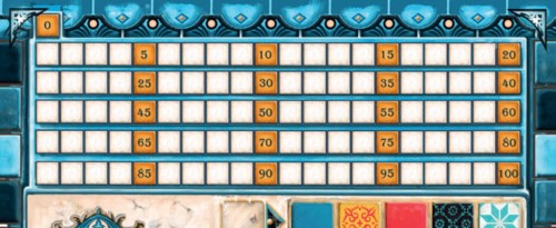 Gain 10 points for each color of which you have placed all 5 tiles on your wall.