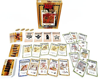 The expansion comes with 8 role cards, which replace the original ones (1 Sheriff, 2 Deputy, 3 Outlaw and 2 Renegade), plus one playing board and the additional bullets.