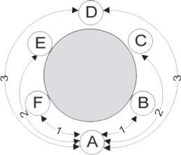 The distance between two players is the minimum number of places between them, counting clockwise or counterclockwise (see figure). The distance is very important, because all cards with a sight take it into account.