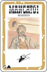 In the picture, though, Jesse has already lost one life point, as the bullet-card under him is showing: three more hits and he will be out!