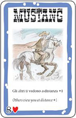 Mustang: when you have a Mustang horse in play the distance between other players and you is increased by 1. However, you still see the other players at the normal distance.