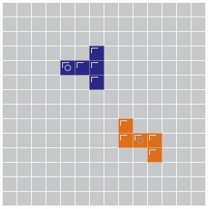 The figure shows an example of a completed game. The orange player is the winner: