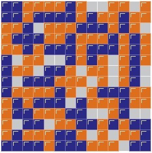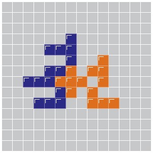 - Each new piece must touch at least one other piece of the same color, but only at the corners.