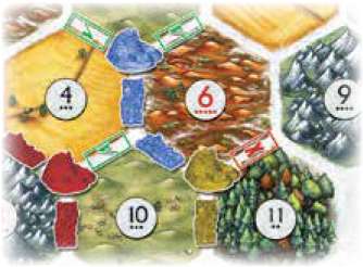 Example: In the illustration on page 1, see the blue settlement on the right, marked with a star. Blue receives 1 brick, 1 lumber, and 1 ore for his settlement.