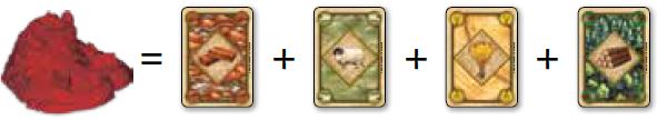 There are 6 terrain types. Five of the terrain types produce a different type of resource. Each resource you receive is represented by a card. Here's what each terrain produces: