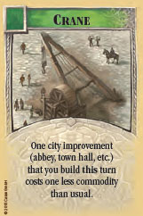 You may use a Crane to reduce the cost of a first-level improvement (to nothing). You may not combine 2 Crane cards for the same improvement.