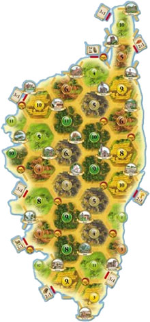 You need the game pieces and cards of the board game "Settlers of Catan" to colonize Corsica. Basically the rules of the board game also apply to this scenario with the following exceptions.