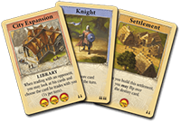• Er zijn 3 verschillende soorten ontwikkelingskaarten: ridder-, vooruitgangs- en overwinningspunt kaarten.