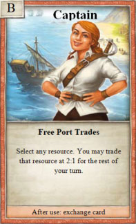 Select 1 resource type, and exchange it as much as you want during your turn at a 2:1 ratio.