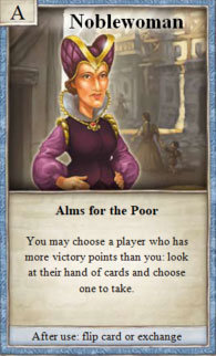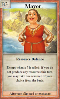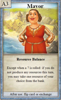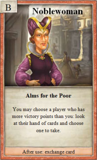 1× during your turn, after rolling the dice, you may select and take 1 resource card from another player who has more victory points than you.