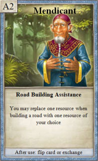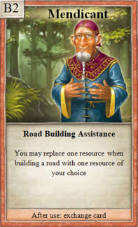 1× during your turn, when you build a road, you may replace either the required brick or the required lumber with any other resource.