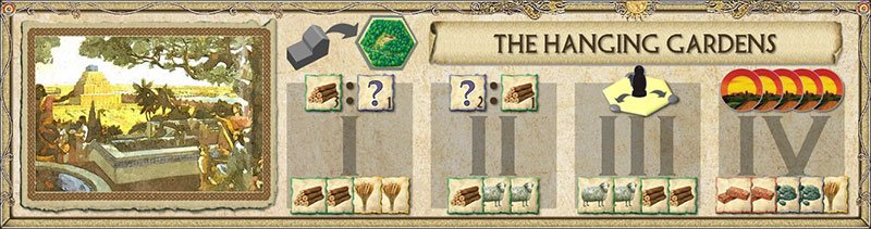 A Wonder may be started at any time during your turn, as long as you meet the Prerequisite and pay the first stage building costs. Take the Wonder Card into your possession and place the Wonder Coin gray-side-up on the matching hex.