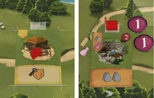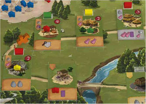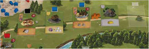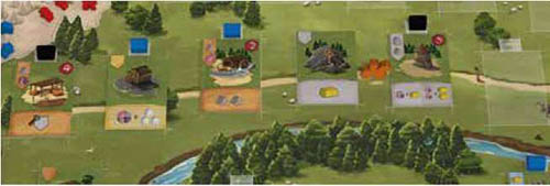 Then, they place 1 of their Houses above that Building to mark ownership and immediately gain the Prestige Points depicted on the upper right side of the tile. Note: It is not allowed to perform this action if there is no available space on the Road.