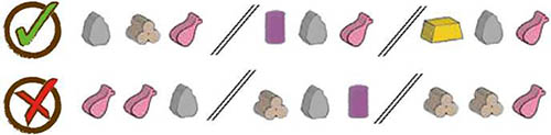 On their turn, the player decides of the number of bundles they will deliver. A bundle must be made of 3 different Resources, one of which must be^y. The player gains 5 Prestige Points per bundle delivered at the Construction Site.