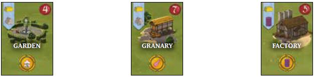Rounds 1 through 3: a player can only activate the effect of the first Building. Rounds 4 through 6: a player chooses the effect of the first or second Building. Rounds 7 through 9: a player can make a choice between the 3 Buildings.