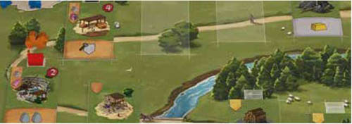 The Provost moves along the Road, between Buildings and empty spaces. Each move is 1 step. The Provost is always placed on the Road, never on an empty space or a Building. The Provost cannot move backward beyond the Guilds Bridge.