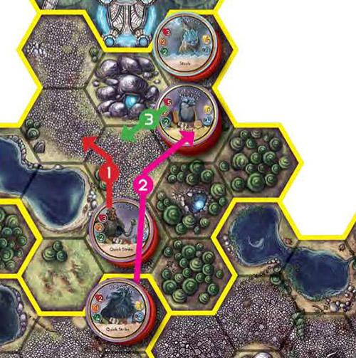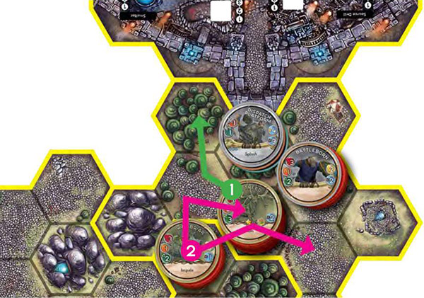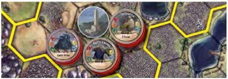 Heroes and some minions have a terrain allowance icon on their chip, indicating the types of terrain that they are able to move on. The majority of minions do not have a terrain allowance icon, as they can only move on path terrain.