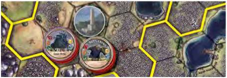 Units cannot move on or through a hex that contains any other units, spires, landmarks, or other chips.