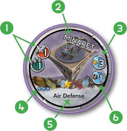 Upgrade chips represent both the spire's stats, and its health. Note that spires and units utilize the same upgrade chips, but they function in different ways (see page 24 for details on upgrading units).