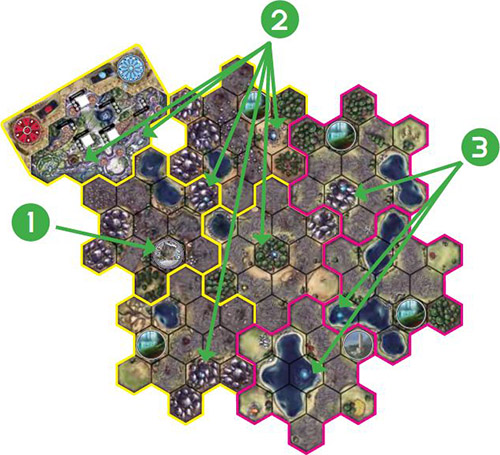 You are considered to have influence over a hex group if it is adjacent to your fortress gate, it already contains a spire controlled by you, or it is adjacent to a hex group containing a spire controlled by you.