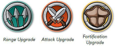 Spires may have 3 types of upgrades: range, attack, and fortification. When upgrades are added to a spire, they are always added to the bottom of the spire. When upgrades are removed from a spire due to damage, they are always removed from the bottom of the spire.