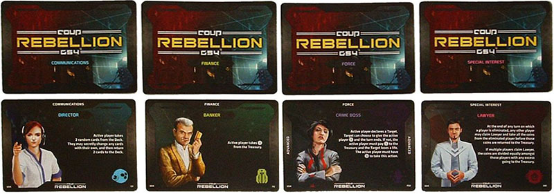 Separate Role Action Cards into 4 piles by type. Choose 5 Role Action cards to play with by randomly taking 1 from each of the Finance, Communications and Force piles and 2 from the Special Interests pile.