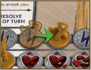 Important: If an effect makes you enter a space of an enemy, or an enemy enters your space during this phase, that enemy attacks you even if it was not in your space at the beginning of this phase. Also, if an enemy that was in your space leaves your space, it doesn't attack you anymore.