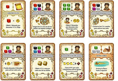 Remember: cards will use the following abbreviations: action cube(s) -AC, gold coin(s) - GC, and prestige point(s) - PP.