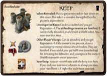 Find and read the Keep Description card. When a keep is revealed, place a gray enemy token face down on its space.