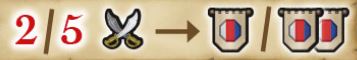 Reduce the combat value by 2 or jl 5 points. Gain 1 or 2 influence with the fighting nation. Move your marker on the corresponding nation's influence track 1 or 2 spaces to the right. You can only choose one of the two options, not both. This combat action is then used.