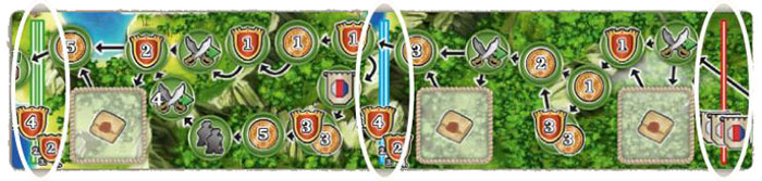 Move your explorer on the explorer track up to as many spaces as indicated by the number next to the symbol. The following rules must be followed: