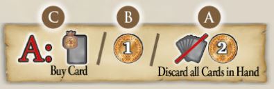 A Discard all of your cards in hand. If you discarded at least one card, take 2 doubloons. You do not immediately redraw cards - that will only happen in Phase C,