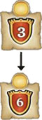 Each white circle with a number is a location. Cities are locations with a scroll depicting an action next to them. All other locations are villages. One move means moving from a location to the next one along the arrow. Unless indicated otherwise, one movement point per move is required.