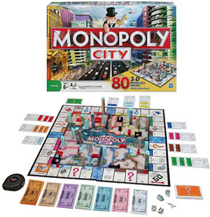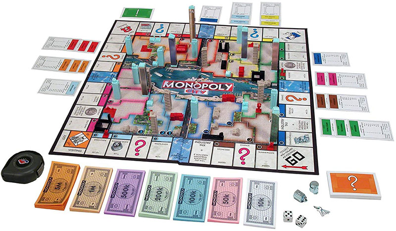 Buy all of the districts in two color groups, and the Monopoly Tower - which doubles the rent value of all your districts - could be yours! Enter The Exciting World Of Monopoly City!