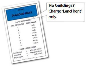 When another player lands on one of your districts, check the following to work out how much they owe you: