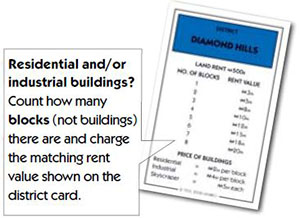 Pay them rent depending on how many buildings are on that district (see page 14).