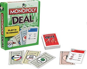 Monopoly Deal is all about collecting properties and stealing from your opponents! Use Action cards to charge rent, swap cards, demand birthday money and lots more. Make sure you put lots of money into your personal bank - and remember other players will steal from you too!