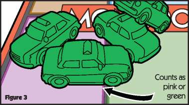 If you rolled a color, at least two of your taxi's wheels must be in that color zone.