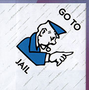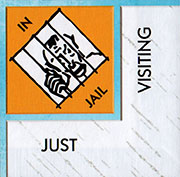 Move your piece to the In Jail space immediately! Do not collect M200 for passing GO. Your turn is now over. You can still collect rent, bid during auctions, buy Village Dwellings and Castles, mortgage and trade while you are in Jail.