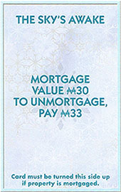 To repay a mortgage, pay the unmortgage cost to the Bank (mortgage value +10%); then, turn the card face up.