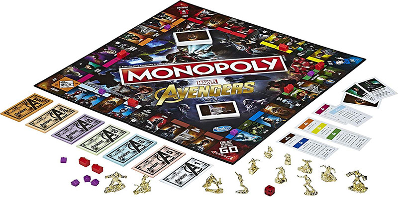 In this version of Monopoly, instead of buying properties, you'll draft heroes for your team. Heroes come in color sets, except for Winter Soldier and Black Panther.