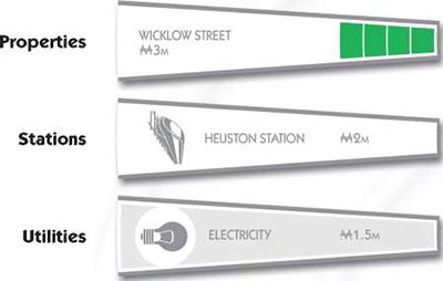 Buy and auction stations in the same way as properties. If you land on an owned station, pay the owner the amount shown on the Title Deed card. The amount you owe is shown on the Title Deed card and depends on the number of other stations that player owns.