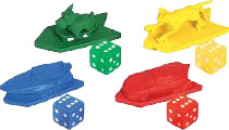 You never have to wait for your turn! Each player gets a piece and a matching die.