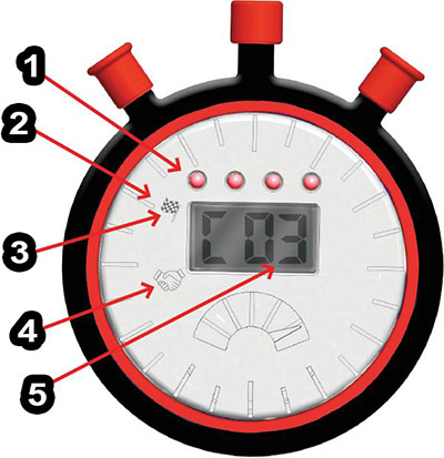 1 These four red lights mark which round you are in. At the start of each round, one will light up. When all four lights are on, you'll know you're in the final round!