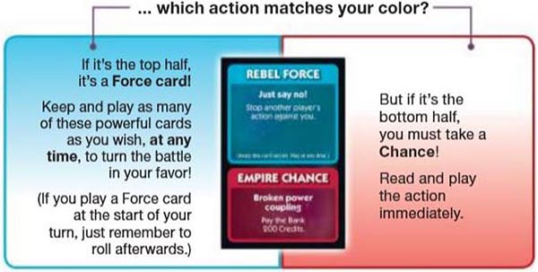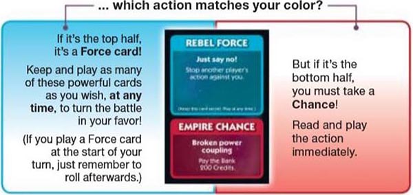 Land on Rebel or Empire spaces to pick up Force cards!