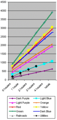 If you end up with a completed color group whose dominance comes later in the game, don't overextend yourself. The lower-rent color groups are likely to give you trouble if you deplete your cash too early. Be patient until your assets grow.