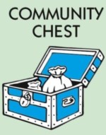 A Community Chest Card will, most likely, give you a reward. There are 16 Community Chest Cards: 9 of these cards give you money (rewards), 3 take money away (penalties), 2 move you elsewhere, 1 take money away if you own building and 1 lets you get out of jail free.