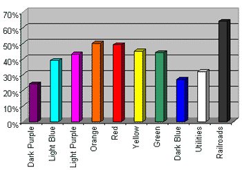 Remember that Illinois Avenue (last Red) is the square most often landed on (not including Jail) and The B&O Railroad and Go are also among those most landed-on.