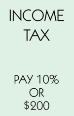 Pay 10% later in the game only if you have paid heavy rents and are fairly sure your assets are below $2000.