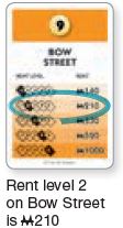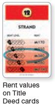- Title Deed cards let the unit keep track of which properties you own, and all their rent levels.